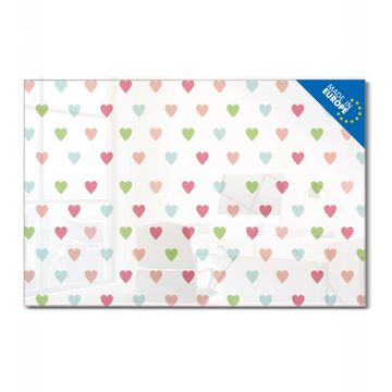 Material: 4mm Sicherheitsglas mit Metallrückwand Eigenschaften: beschreibbar, magnetisch, kratzfest Maße: 120x60x0,6cm, 10,80kg schwer Motiv Nummer 11246 Herzen Auf Weiß Zubehör: inklusive 4 Neodym-Magnete