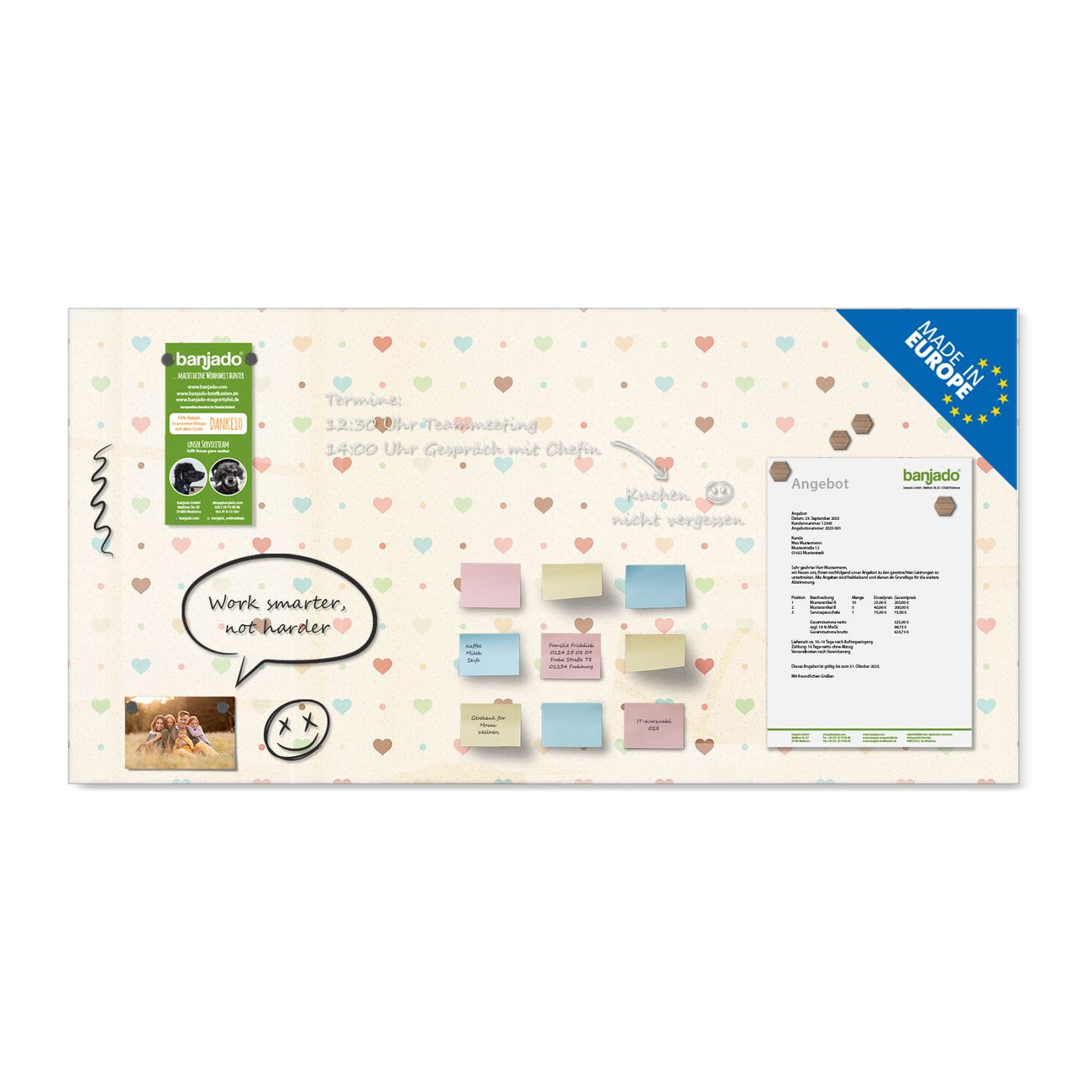 Glas Magnettafel im Querformat Motiv Herzen bunt