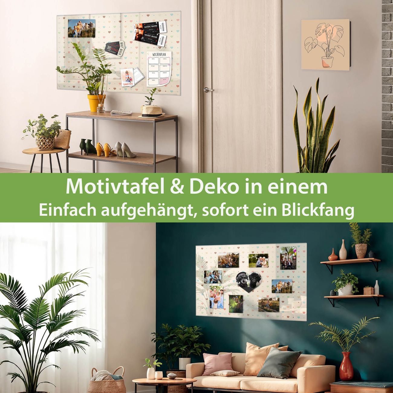 Ein Stück Design, das Ihren Alltag organisiert. Schreiben, heften, inspirieren - alles an einem Ort. Qualität, die man spürt. Montage leicht gemacht. Handwerk mit Herz - veredelt in Sachsen. Einzigartiges Design mit Motiv Motiv Herzen bunt Beschreibbare Glasoberfläche, leicht zu reinigen Starke Magnetkraft durch Stahlrückwand Inklusive 4 Neodym-Magneten Flexible Montageoptionen Handveredelt in Sachsen - Qualität, die bleibt