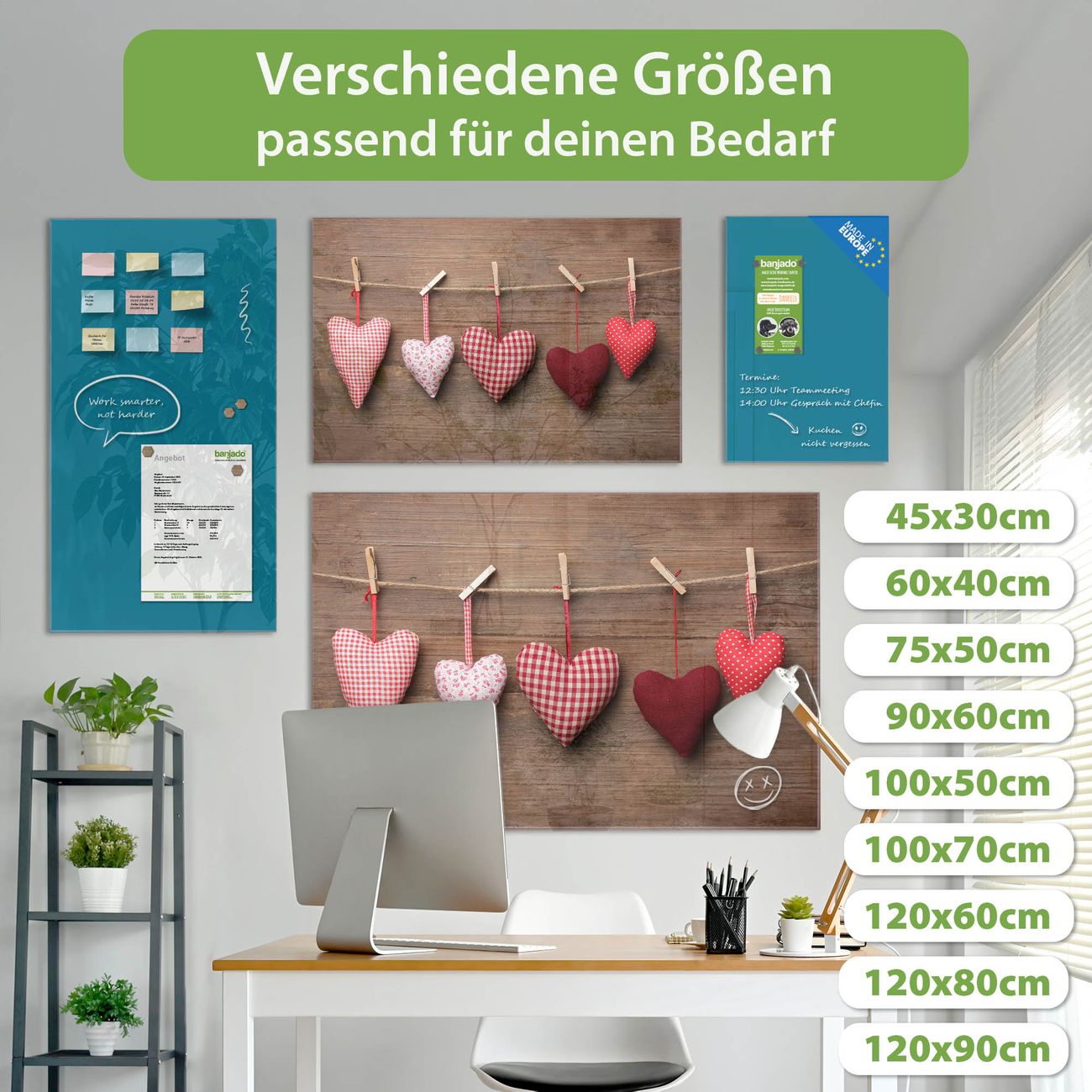 Die banjado Glas Magnettafel mit dem Motiv Motiv Herzen verbindet Funktionalität mit Stil. Sie ersetzt das Zettelchaos durch klare Strukturen und bringt dabei eine warme, natürliche Atmosphäre in Ihr Zuhause. Ob im Büro, in der Küche oder im Eingangsbereich - dieses Design-Board zieht Blicke an und sorgt für Ordnung mit Charakter.