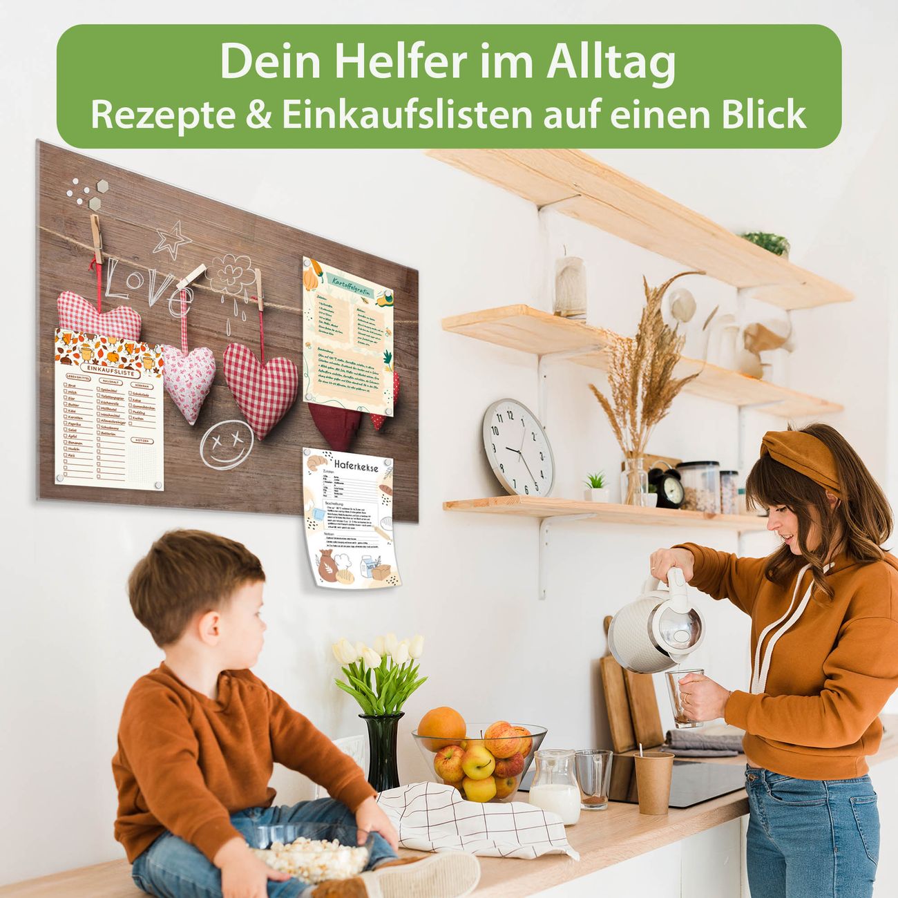 Ein Stück Design, das Ihren Alltag organisiert. Schreiben, heften, inspirieren - alles an einem Ort. Qualität, die man spürt. Montage leicht gemacht. Handwerk mit Herz - veredelt in Sachsen. Einzigartiges Design mit Motiv Motiv Herzen Beschreibbare Glasoberfläche, leicht zu reinigen Starke Magnetkraft durch Stahlrückwand Inklusive 4 Neodym-Magneten Flexible Montageoptionen Handveredelt in Sachsen - Qualität, die bleibt