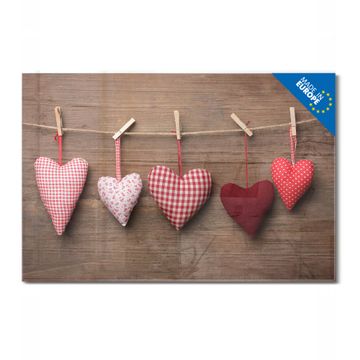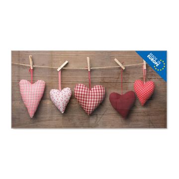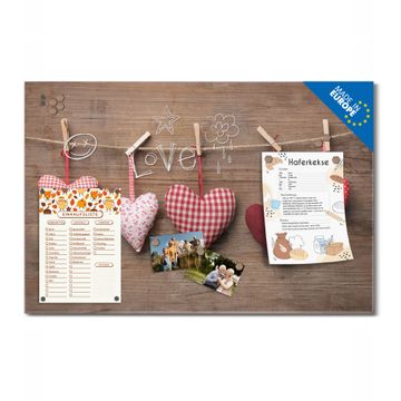 Material: 4mm Sicherheitsglas mit Metallrückwand Eigenschaften: beschreibbar, magnetisch, kratzfest Maße: 120x60x0,6cm, 10,80kg schwer Motiv Nummer 10210 Herzen Zubehör: inklusive 4 Neodym-Magnete