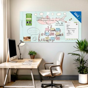 Auf der glatten Glasoberfläche lassen sich Termine, Rezepte oder Notizen ganz einfach mit Kreidestiften festhalten und rückstandslos entfernen. Starke Neodym-Magnete halten Ihre wichtigsten Erinnerungen sicher an Ort und Stelle. So entsteht Ihre ganz persönliche Ideenwand - jeden Tag neu.