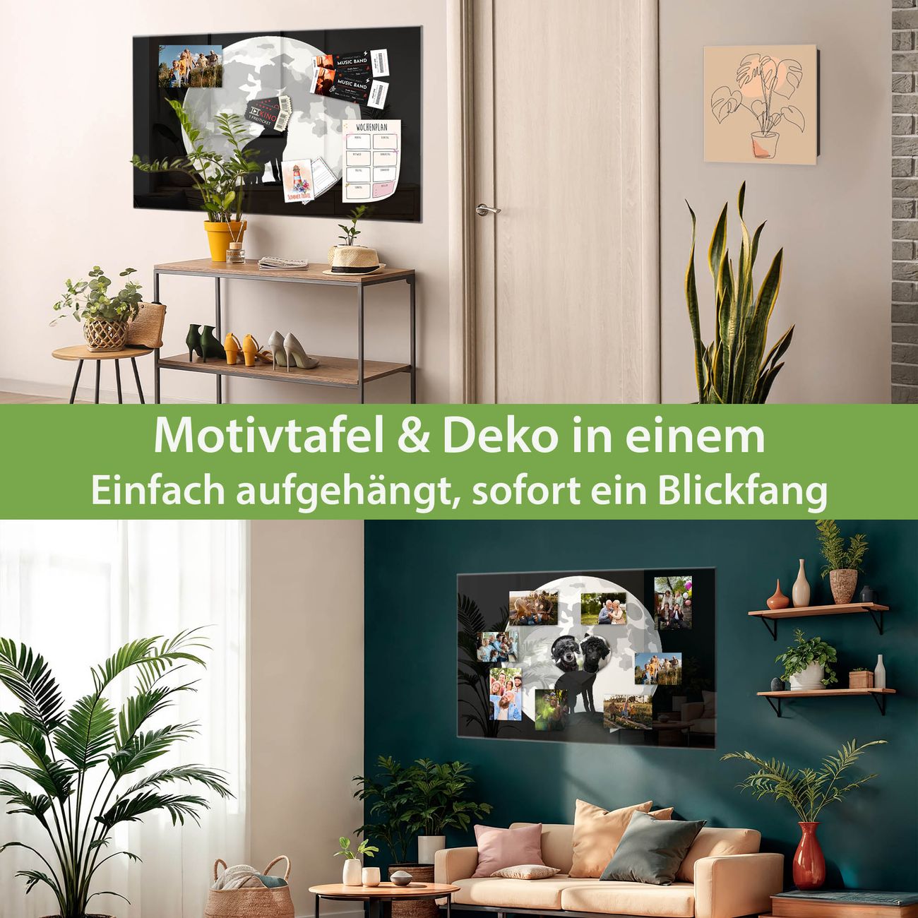 Dank der flachen Bauweise wirkt die Magnetwand fast schwebend an der Wand. Sie können sie mit Montagekleber elegant befestigen oder mit einem passenden Set klassisch verschrauben - beides sorgt für sicheren Halt und eine dezente Optik.