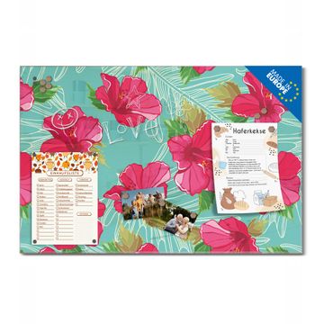 Material: 4mm Sicherheitsglas mit Metallrückwand Eigenschaften: beschreibbar, magnetisch, kratzfest Maße: 45x30x0,6cm, 2,03kg schwer Motiv Nummer 11184 Hibiskus Zubehör: inklusive 4 Neodym-Magnete