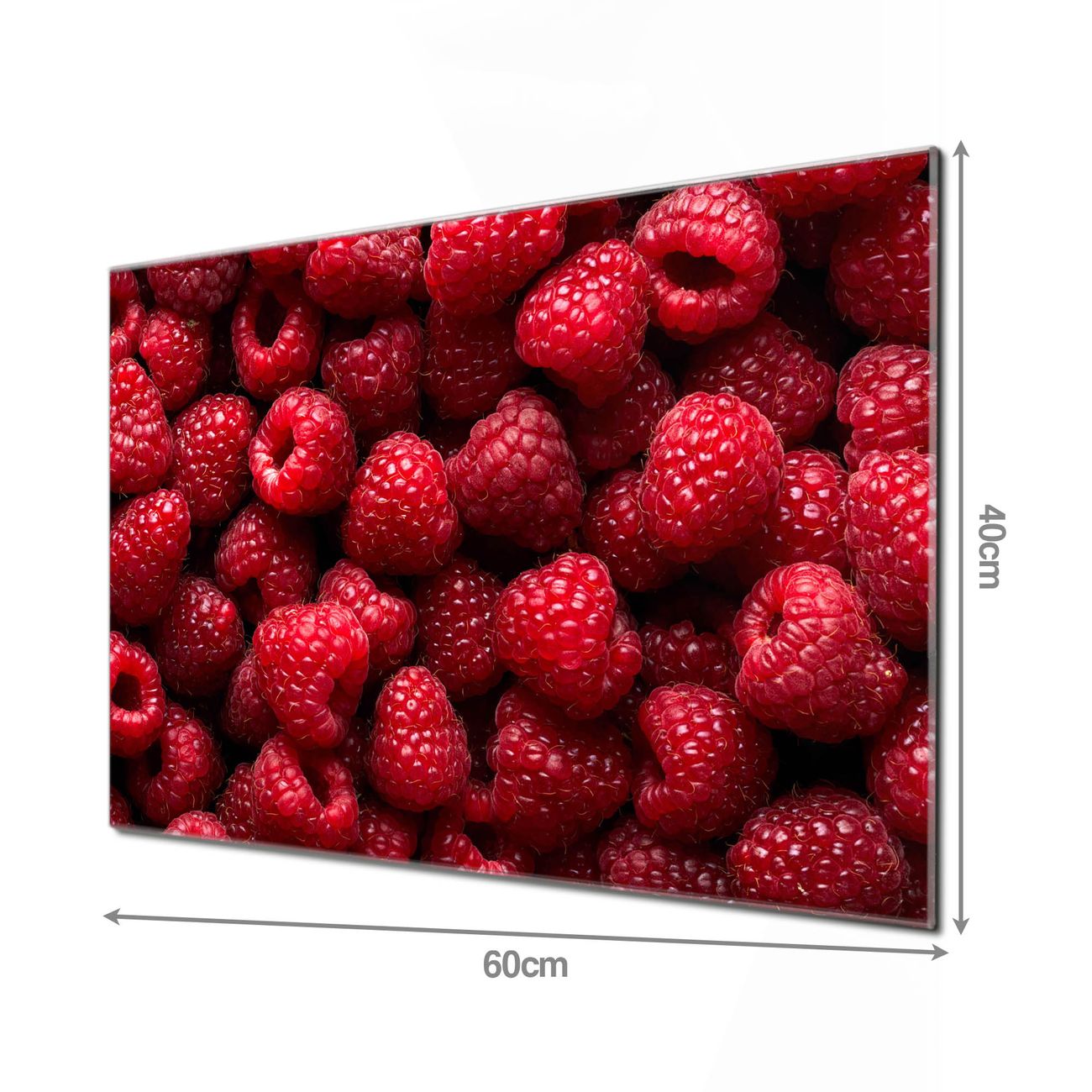 Material: 4mm Sicherheitsglas mit Metallrückwand Eigenschaften: beschreibbar, magnetisch, kratzfest Maße: 60x40x0,6cm, 3,6kg schwer Motiv Nummer 11600 Himbeeren Zubehör: inklusive 4 Neodym-Magnete