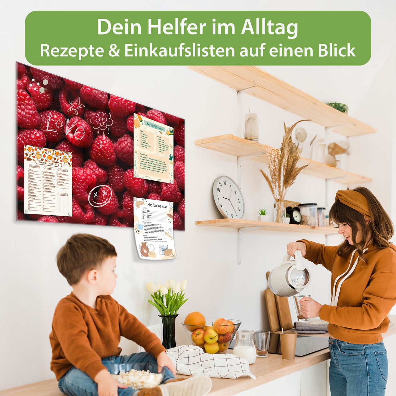Ein Stück Design, das Ihren Alltag organisiert. Schreiben, heften, inspirieren - alles an einem Ort. Qualität, die man spürt. Montage leicht gemacht. Handwerk mit Herz - veredelt in Sachsen. Einzigartiges Design mit Motiv Motiv Himbeeren Beschreibbare Glasoberfläche, leicht zu reinigen Starke Magnetkraft durch Stahlrückwand Inklusive 4 Neodym-Magneten Flexible Montageoptionen Handveredelt in Sachsen - Qualität, die bleibt
