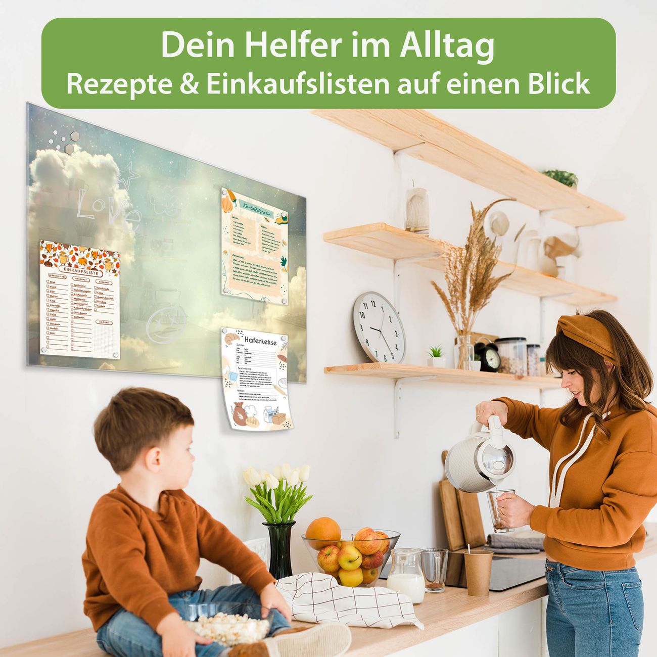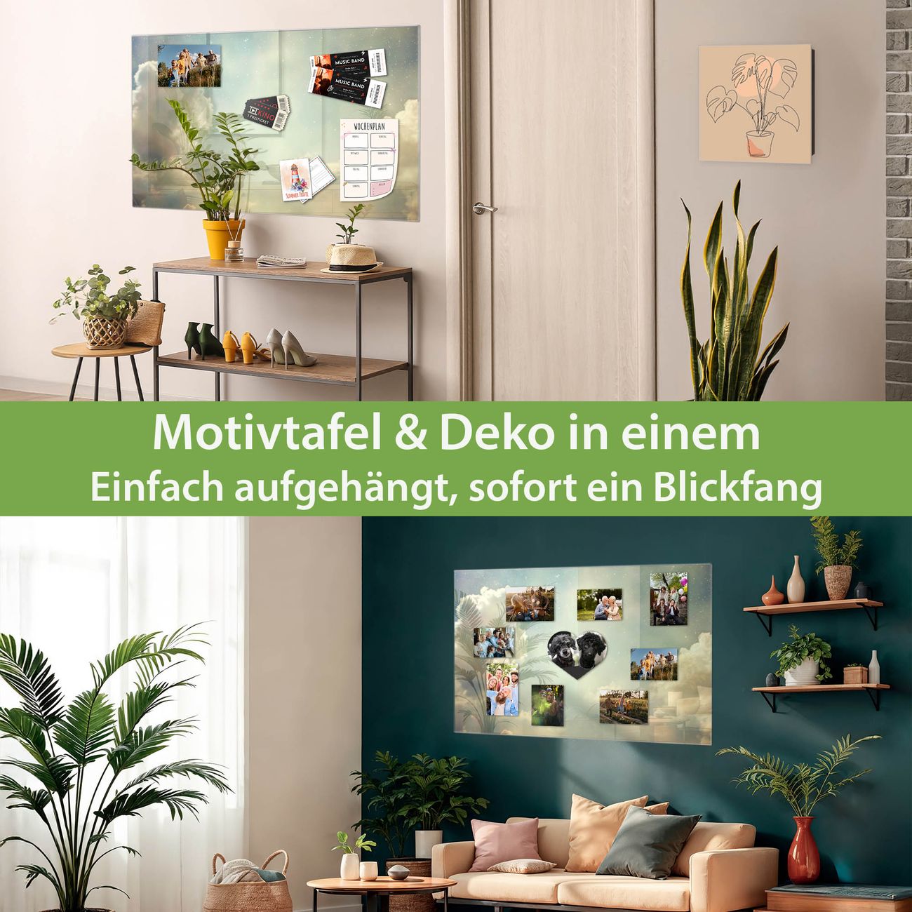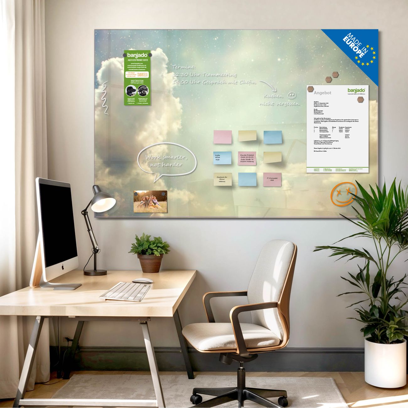 Die banjado Glas Magnettafel mit dem Motiv Motiv Himmel Vintage verbindet Funktionalität mit Stil. Sie ersetzt das Zettelchaos durch klare Strukturen und bringt dabei eine warme, natürliche Atmosphäre in Ihr Zuhause. Ob im Büro, in der Küche oder im Eingangsbereich - dieses Design-Board zieht Blicke an und sorgt für Ordnung mit Charakter.