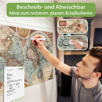 Ein Stück Design, das Ihren Alltag organisiert. Schreiben, heften, inspirieren - alles an einem Ort. Qualität, die man spürt. Montage leicht gemacht. Handwerk mit Herz - veredelt in Sachsen. Einzigartiges Design mit Motiv Motiv Historische Weltkarte Beschreibbare Glasoberfläche, leicht zu reinigen Starke Magnetkraft durch Stahlrückwand Inklusive 4 Neodym-Magneten Flexible Montageoptionen Handveredelt in Sachsen - Qualität, die bleibt
