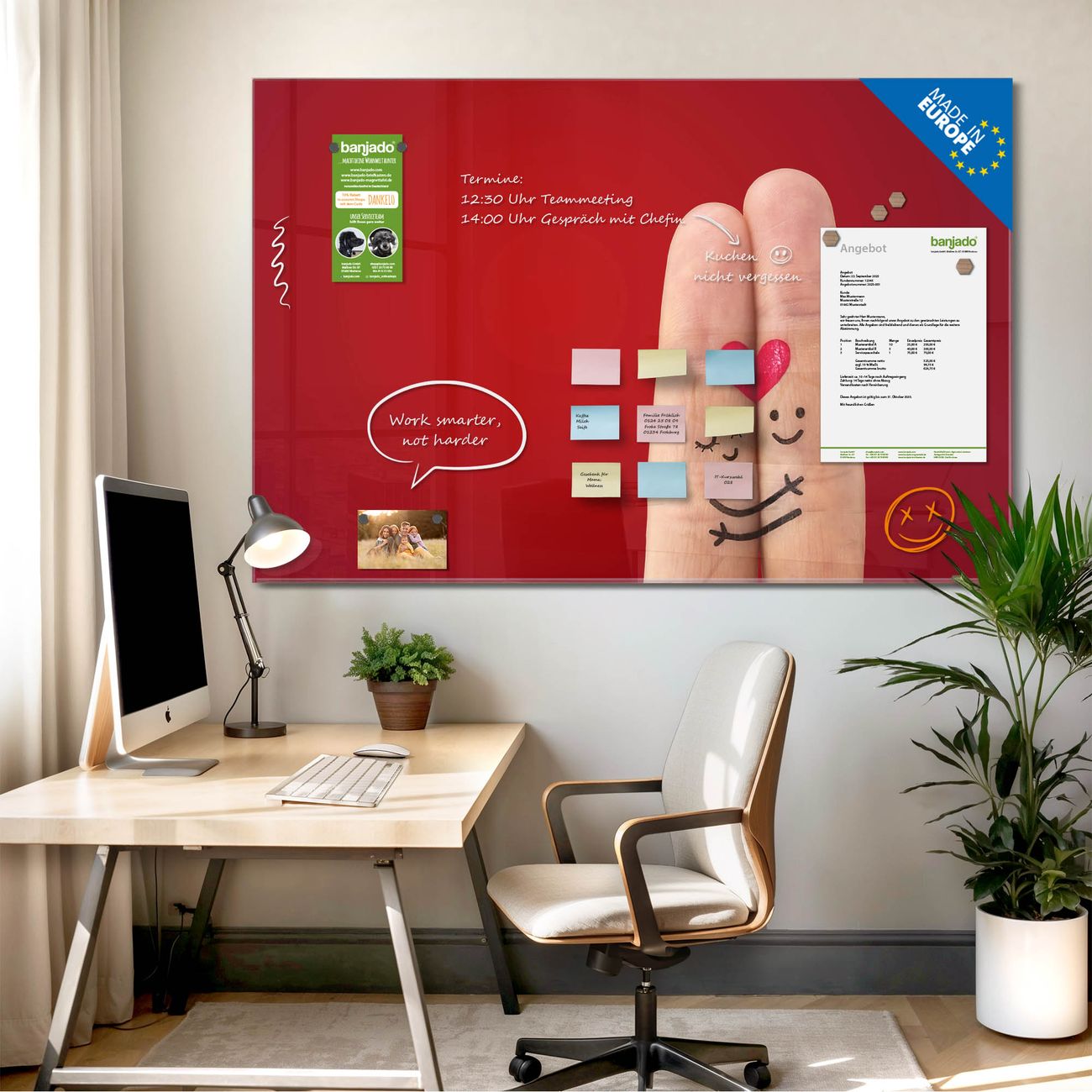 Jede Glas Magnettafel wird in unserer Werkstatt von Hand gefertigt und sorgfältig geprüft. So erhalten Sie ein echtes Qualitätsprodukt, das Funktion und Ästhetik perfekt vereint.?? Warum banjado?
