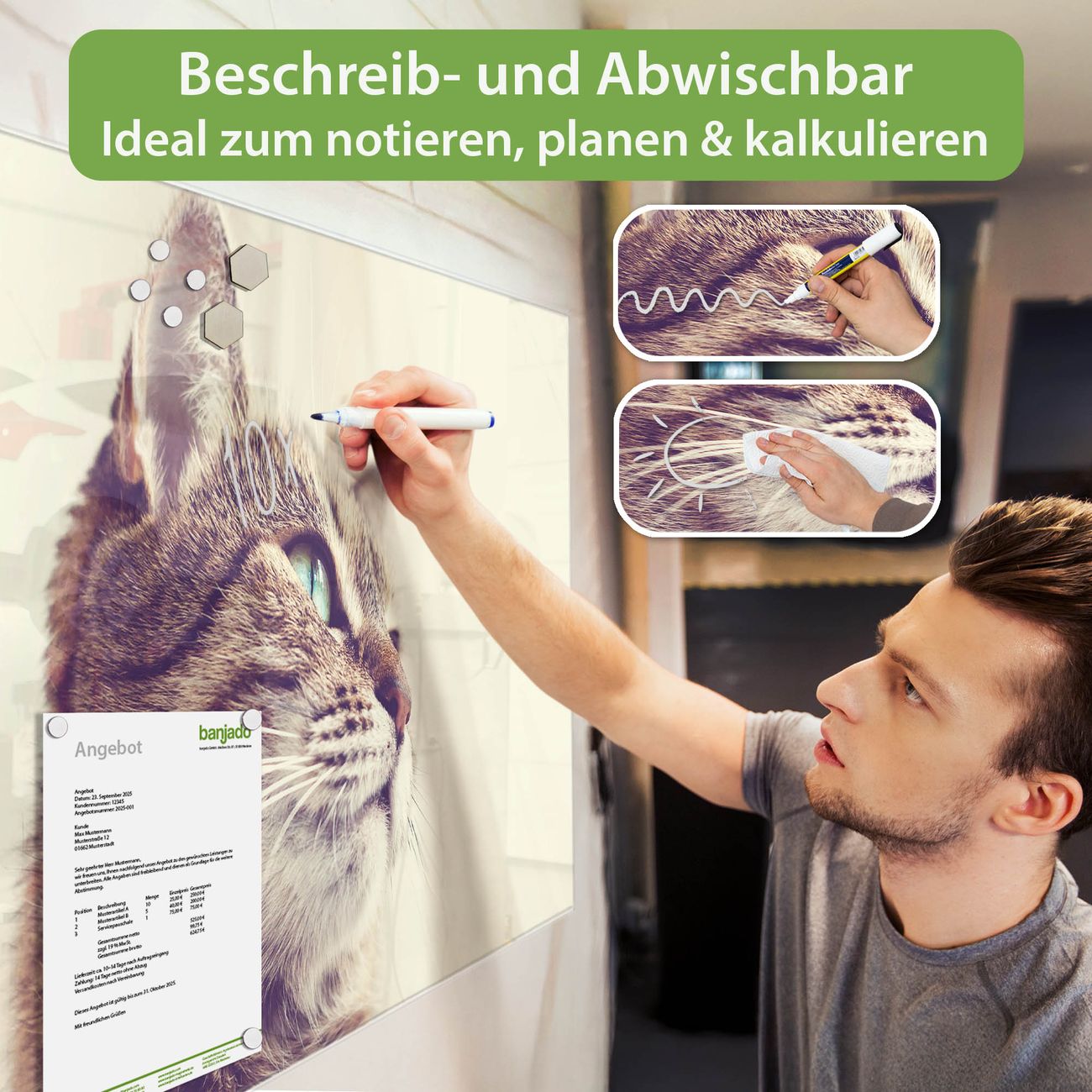 Jede Glas Magnettafel wird in unserer Werkstatt von Hand gefertigt und sorgfältig geprüft. So erhalten Sie ein echtes Qualitätsprodukt, das Funktion und Ästhetik perfekt vereint.?? Warum banjado?