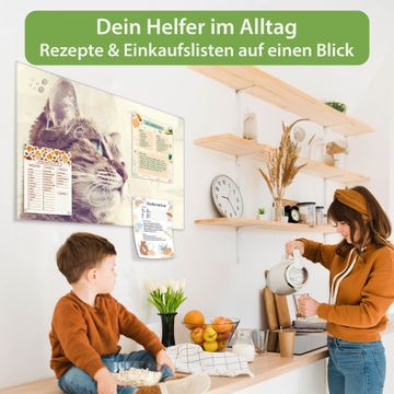 Auf der glatten Glasoberfläche lassen sich Termine, Rezepte oder Notizen ganz einfach mit Kreidestiften festhalten und rückstandslos entfernen. Starke Neodym-Magnete halten Ihre wichtigsten Erinnerungen sicher an Ort und Stelle. So entsteht Ihre ganz persönliche Ideenwand - jeden Tag neu.