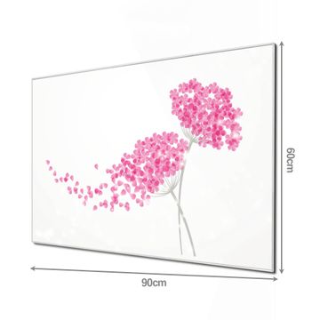 Material: 4mm Sicherheitsglas mit Metallrückwand Eigenschaften: beschreibbar, magnetisch, kratzfest Maße: 90x60x0,6cm, 8,10kg schwer Motiv Nummer 11242 Holunder Pink Zubehör: inklusive 4 Neodym-Magnete