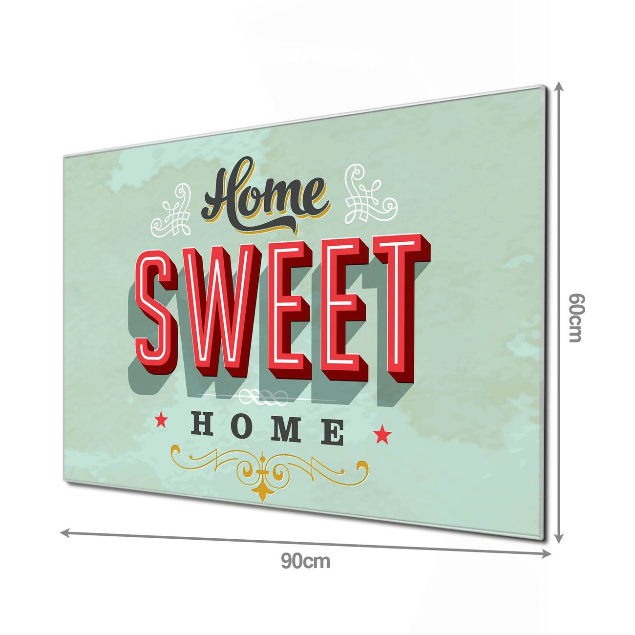 Material  4mm Sicherheitsglas mit Metallrückwand Eigenschaften  beschreibbar, magnetisch, kratzfest Maße  90x60x0,6cm, 8,10kg schwer Motiv  Nummer 10732 Home Sweet Home Zubehör  inklusive 4 Neodym-Magnete