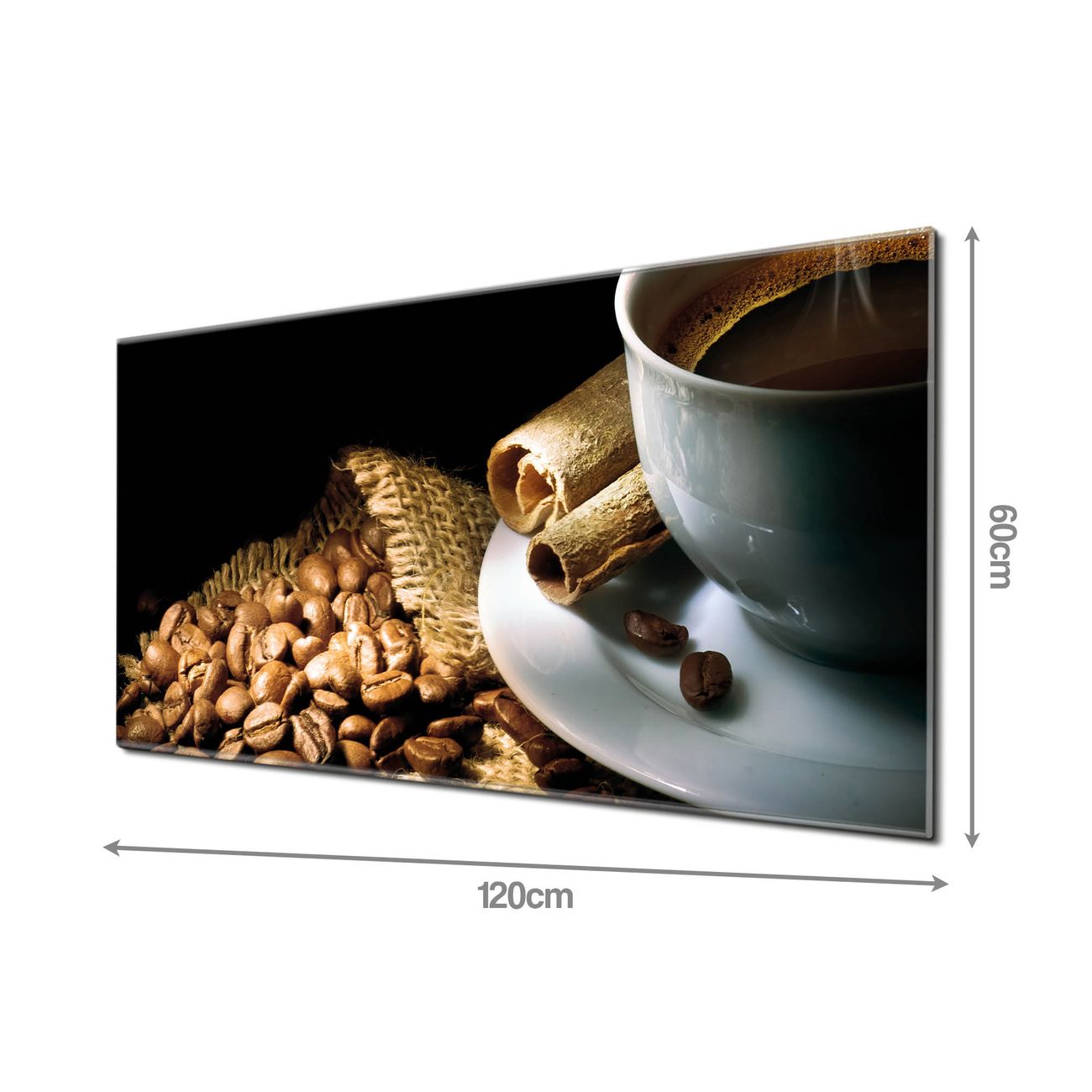 Material: 4mm Sicherheitsglas mit Metallrückwand Eigenschaften: beschreibbar, magnetisch, kratzfest Maße: 120x60x0,6cm, 10,80kg schwer Motiv Nummer 10176 Hot Coffee Zubehör: inklusive 4 Neodym-Magnete