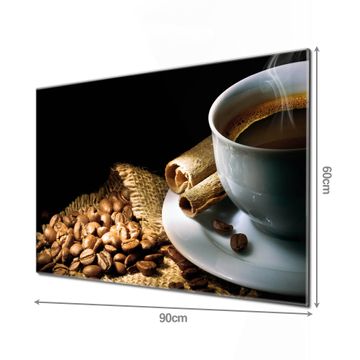 Material: 4mm Sicherheitsglas mit Metallrückwand Eigenschaften: beschreibbar, magnetisch, kratzfest Maße: 90x60x0,6cm, 8,10kg schwer Motiv Nummer 10176 Hot Coffee Zubehör: inklusive 4 Neodym-Magnete