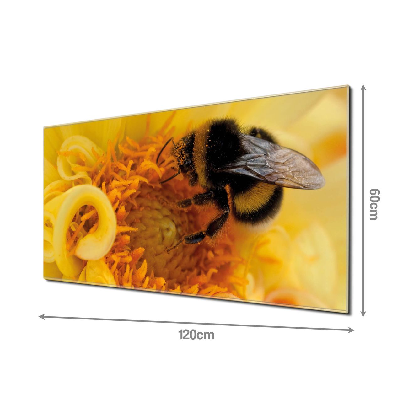 Material: 4mm Sicherheitsglas mit Metallrückwand Eigenschaften: beschreibbar, magnetisch, kratzfest Maße: 120x60x0,6cm, 10,80kg schwer Motiv Nummer 10465 Hummel Zubehör: inklusive 4 Neodym-Magnete
