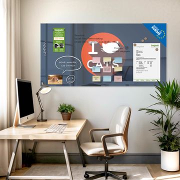 Auf der glatten Glasoberfläche lassen sich Termine, Rezepte oder Notizen ganz einfach mit Kreidestiften festhalten und rückstandslos entfernen. Starke Neodym-Magnete halten Ihre wichtigsten Erinnerungen sicher an Ort und Stelle. So entsteht Ihre ganz persönliche Ideenwand - jeden Tag neu.