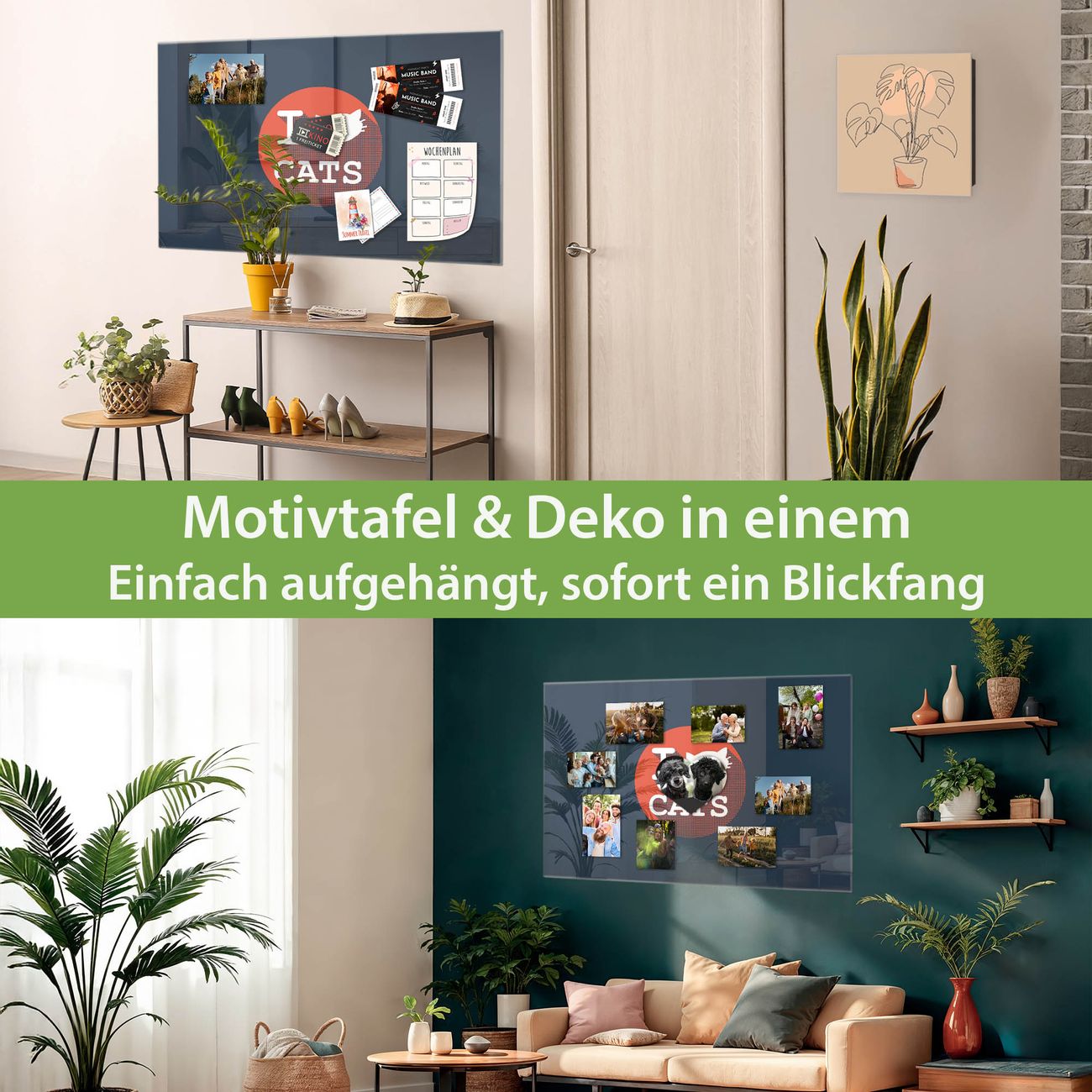 Die banjado Glas Magnettafel mit dem Motiv Motiv I Love Cats verbindet Funktionalität mit Stil. Sie ersetzt das Zettelchaos durch klare Strukturen und bringt dabei eine warme, natürliche Atmosphäre in Ihr Zuhause. Ob im Büro, in der Küche oder im Eingangsbereich - dieses Design-Board zieht Blicke an und sorgt für Ordnung mit Charakter.