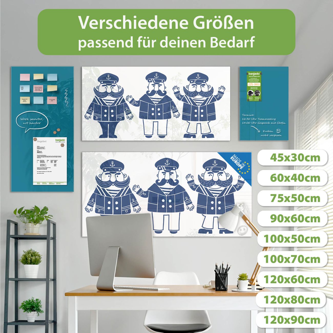Material: 4mm Sicherheitsglas mit Metallrückwand Eigenschaften: beschreibbar, magnetisch, kratzfest Maße: 120x60x0,6cm, 10,80kg schwer Motiv Nummer 11055 I Love Sea Zubehör: inklusive 4 Neodym-Magnete