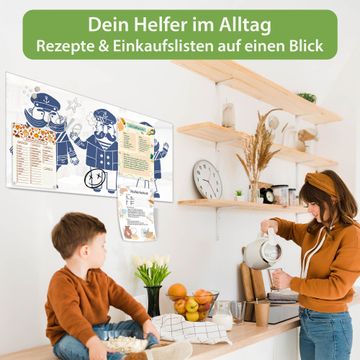 Auf der glatten Glasoberfläche lassen sich Termine, Rezepte oder Notizen ganz einfach mit Kreidestiften festhalten und rückstandslos entfernen. Starke Neodym-Magnete halten Ihre wichtigsten Erinnerungen sicher an Ort und Stelle. So entsteht Ihre ganz persönliche Ideenwand - jeden Tag neu.