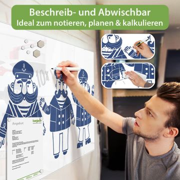 Gefertigt aus gehärtetem Sicherheitsglas mit einer magnetischen Rückwand aus Stahl überzeugt diese Magnettafel durch Stabilität und Langlebigkeit. Die Oberfläche bleibt dauerhaft brillant und pflegeleicht, selbst bei täglicher Nutzung.