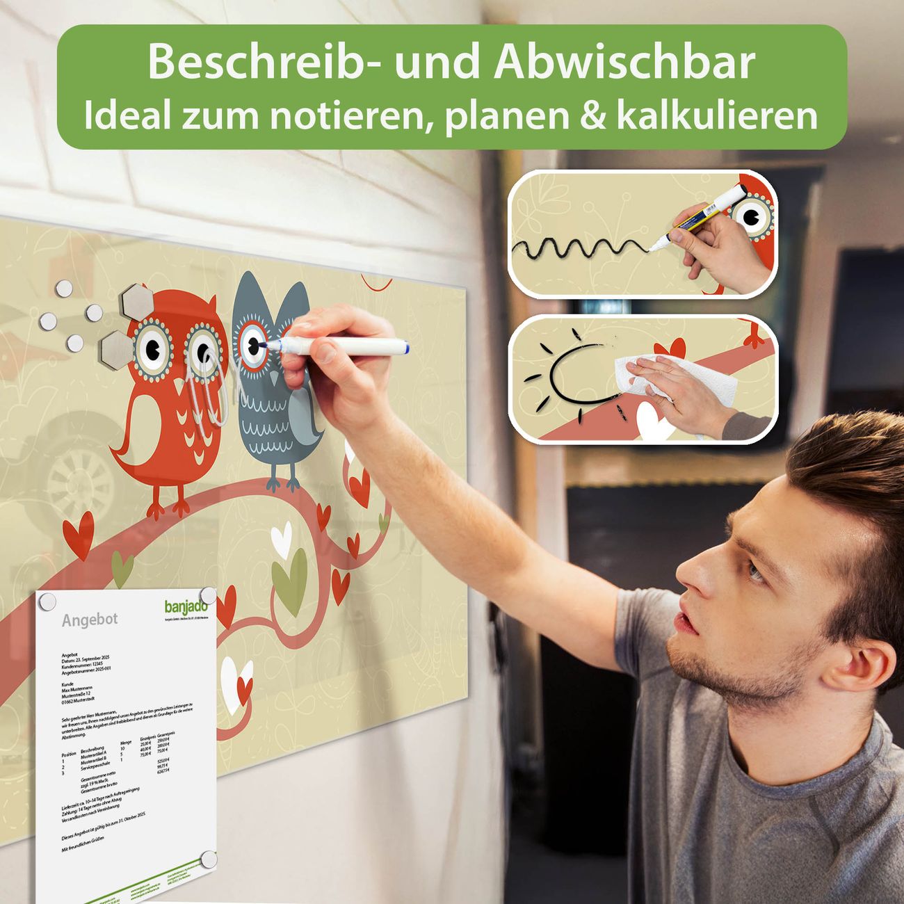 Bitte beachten Sie, dass ausschliessliche spezielle Magnete an der Glastafel haften. Wir empfehlen banjado Neodym Magnete, diese sind durch uns auf Wirksamkeit geprüft.