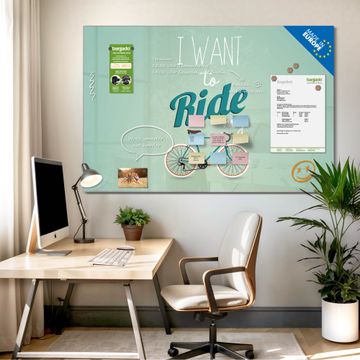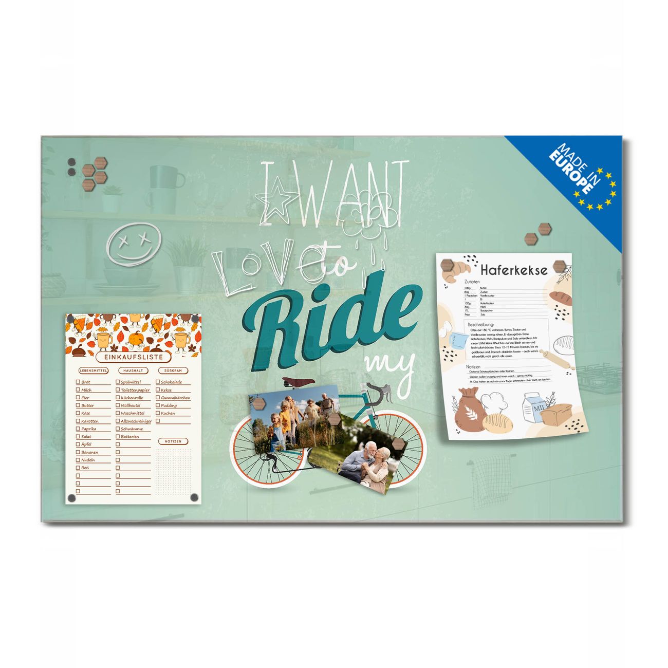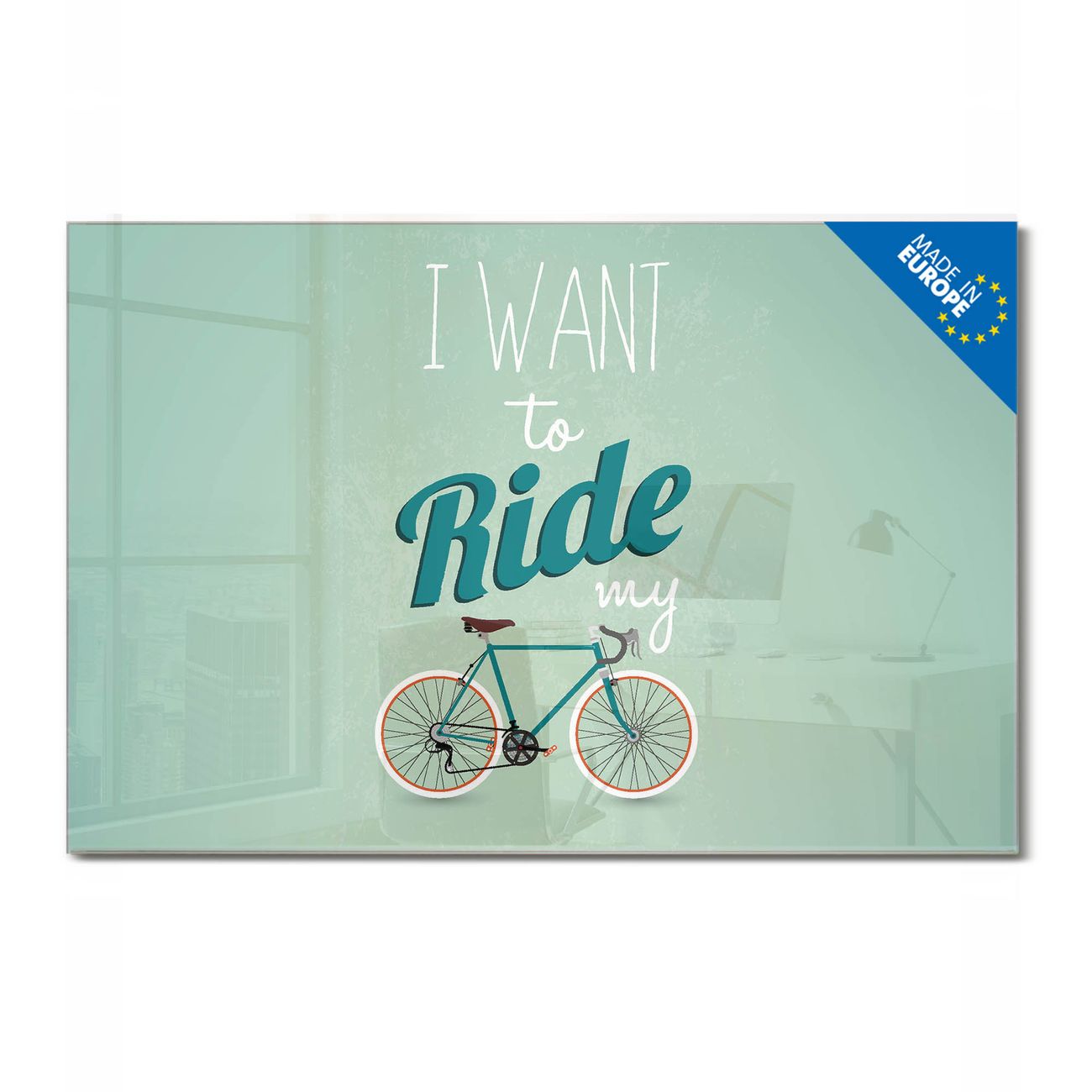 Glas Magnettafel im Querformat Motiv I want to ride my bike