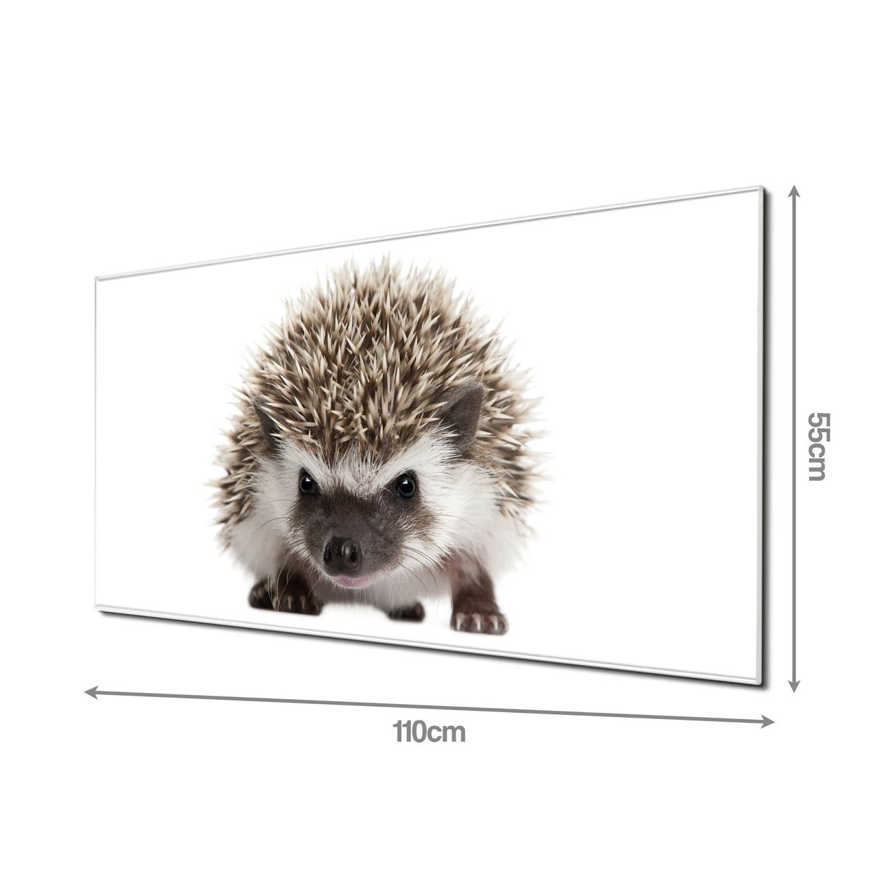 Material: 4mm Sicherheitsglas mit Metallrückwand Eigenschaften: beschreibbar, magnetisch, kratzfest Maße: 110x55x0,6cm, 9,08kg schwer Motiv Nummer 10202 Igel Zubehör: inklusive 4 Neodym-Magnete
