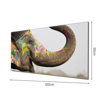 Material: 4mm Sicherheitsglas mit Metallrückwand Eigenschaften: beschreibbar, magnetisch, kratzfest Maße: 120x60x0,6cm, 10,80kg schwer Motiv Nummer 12675 Indischer Elephant Zubehör: inklusive 4 Neodym-Magnete