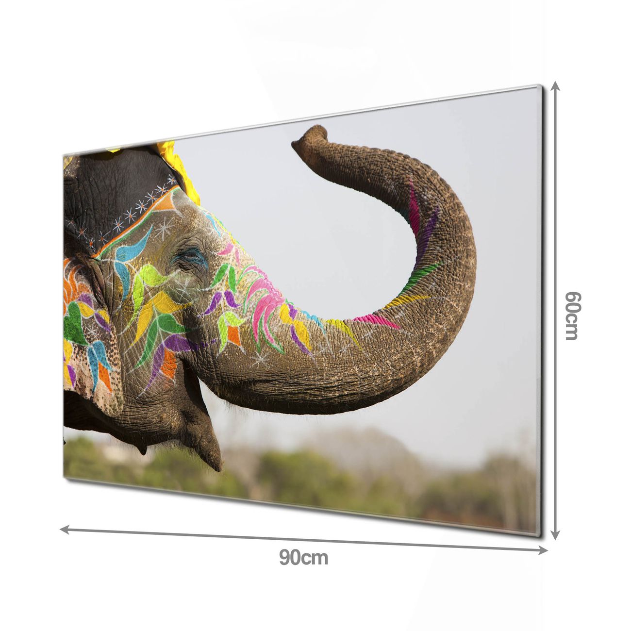 Material  4mm Sicherheitsglas mit Metallrückwand Eigenschaften  beschreibbar, magnetisch, kratzfest Maße  90x60x0,6cm, 8,10kg schwer Motiv  Nummer 12675 Indischer Elephant Zubehör  inklusive 4 Neodym-Magnete