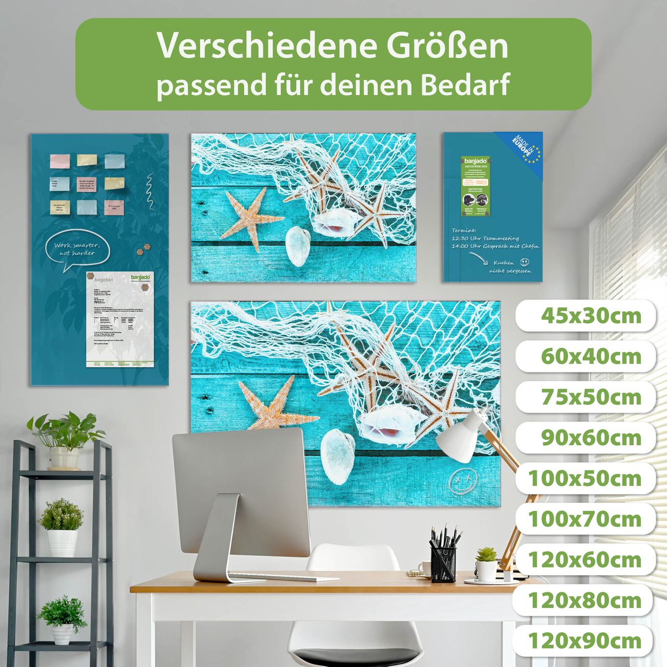 Material: 4mm Sicherheitsglas mit Metallrückwand Eigenschaften: beschreibbar, magnetisch, kratzfest Maße: 75x50x0,6cm, 5,63kg schwer Motiv Nummer 11178 Ins Netz Gegangen Zubehör: inklusive 4 Neodym-Magnete