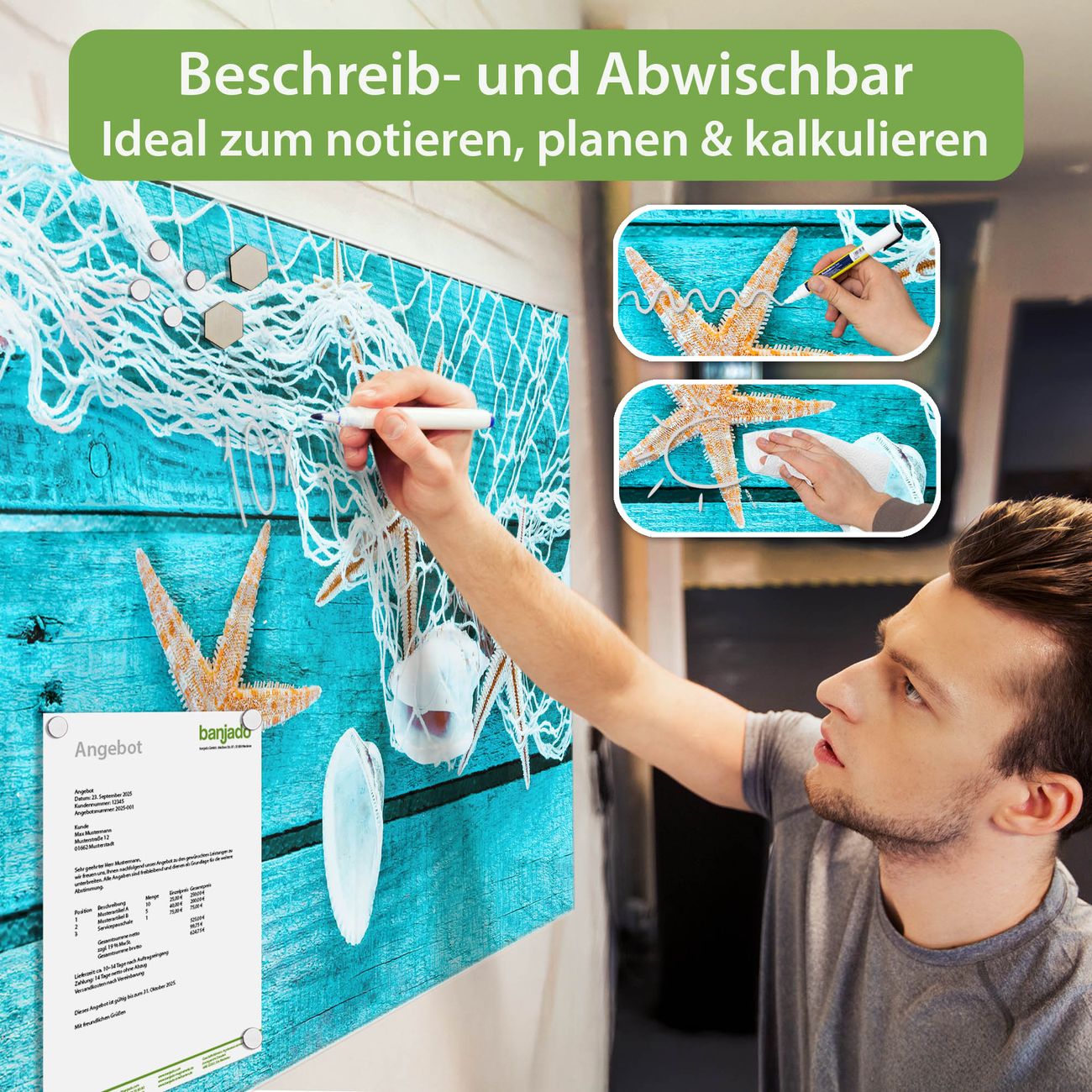 Bitte beachten Sie, dass ausschliessliche spezielle Magnete an der Glastafel haften. Wir empfehlen banjado Neodym Magnete, diese sind durch uns auf Wirksamkeit geprüft.