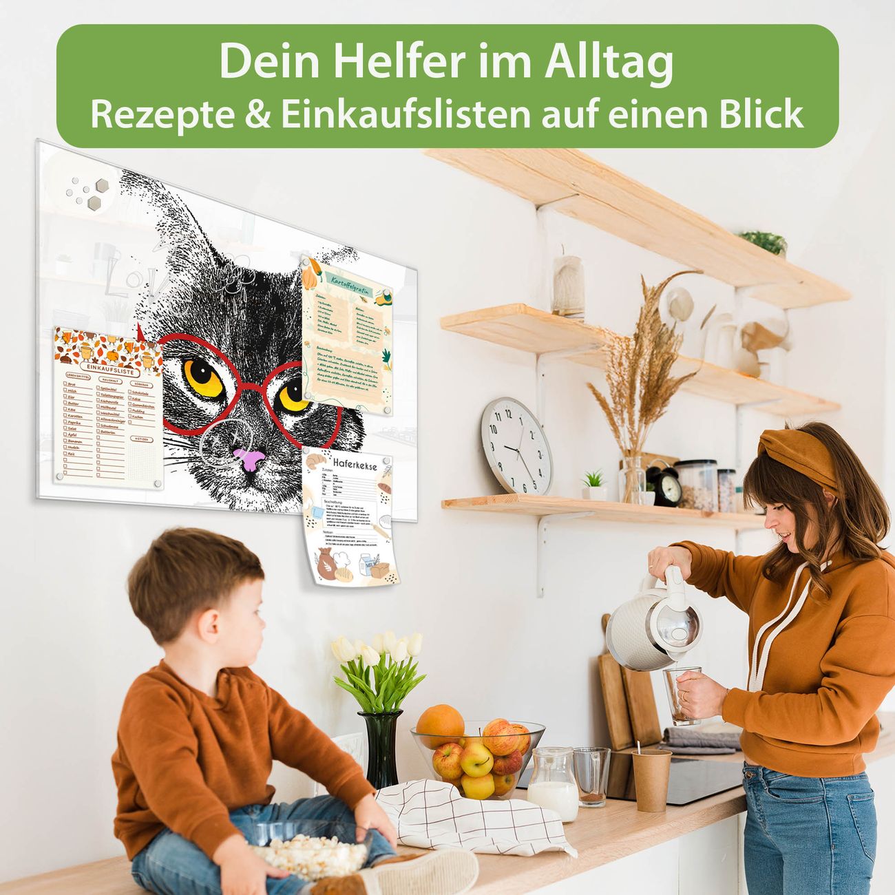 Ein Stück Design, das Ihren Alltag organisiert. Schreiben, heften, inspirieren - alles an einem Ort. Qualität, die man spürt. Montage leicht gemacht. Handwerk mit Herz - veredelt in Sachsen. Einzigartiges Design mit Motiv Motiv Intellicat Beschreibbare Glasoberfläche, leicht zu reinigen Starke Magnetkraft durch Stahlrückwand Inklusive 4 Neodym-Magneten Flexible Montageoptionen Handveredelt in Sachsen - Qualität, die bleibt