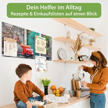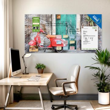 Die banjado Glas Magnettafel mit dem Motiv Motiv Italienischer Roller verbindet Funktionalität mit Stil. Sie ersetzt das Zettelchaos durch klare Strukturen und bringt dabei eine warme, natürliche Atmosphäre in Ihr Zuhause. Ob im Büro, in der Küche oder im Eingangsbereich - dieses Design-Board zieht Blicke an und sorgt für Ordnung mit Charakter.