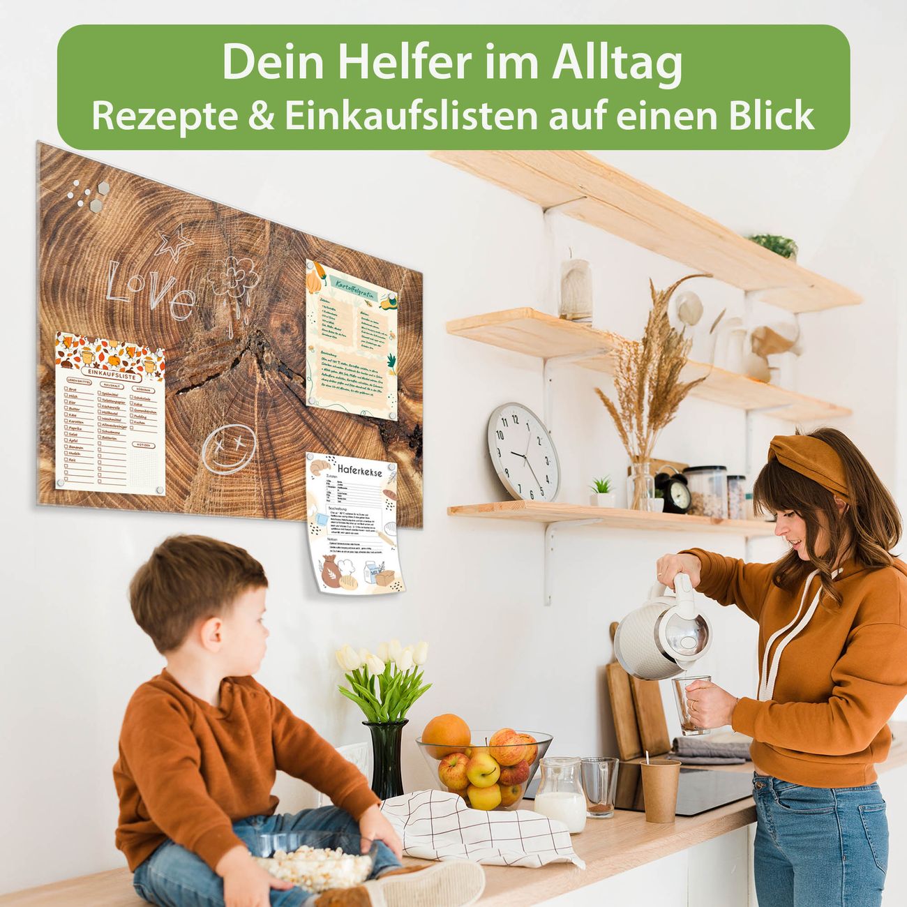 Ein Stück Design, das Ihren Alltag organisiert. Schreiben, heften, inspirieren - alles an einem Ort. Qualität, die man spürt. Montage leicht gemacht. Handwerk mit Herz - veredelt in Sachsen. Einzigartiges Design mit Motiv Motiv Jahresringe Beschreibbare Glasoberfläche, leicht zu reinigen Starke Magnetkraft durch Stahlrückwand Inklusive 4 Neodym-Magneten Flexible Montageoptionen Handveredelt in Sachsen - Qualität, die bleibt