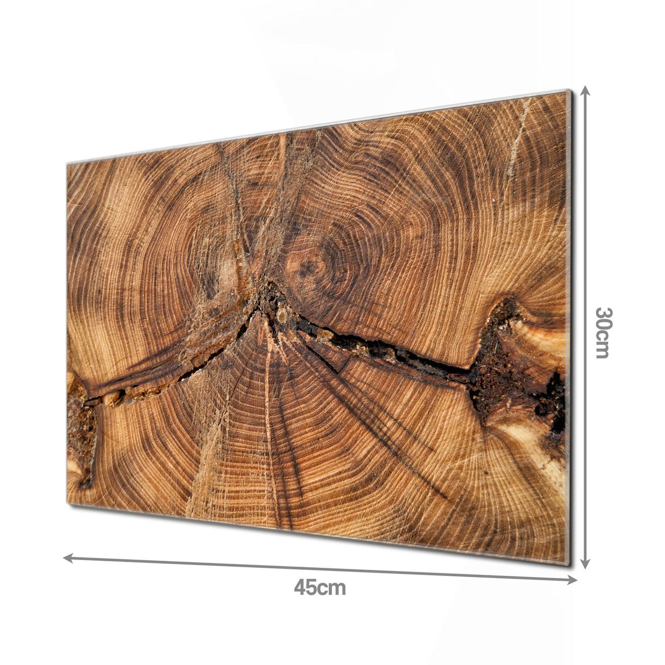 Material: 4mm Sicherheitsglas mit Metallrückwand Eigenschaften: beschreibbar, magnetisch, kratzfest Maße: 45x30x0,6cm, 2,03kg schwer Motiv Nummer 11997 Jahresringe Zubehör: inklusive 4 Neodym-Magnete