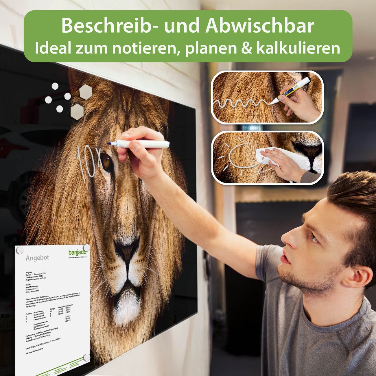 Bitte beachten Sie, dass ausschliessliche spezielle Magnete an der Glastafel haften. Wir empfehlen banjado Neodym Magnete, diese sind durch uns auf Wirksamkeit geprüft.