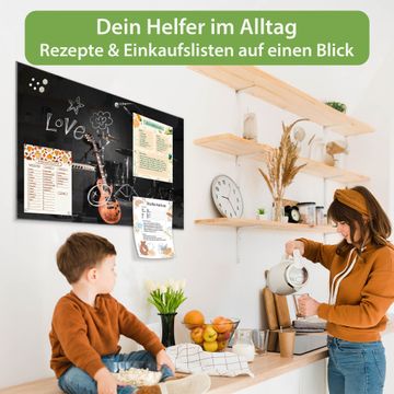 Auf der glatten Glasoberfläche lassen sich Termine, Rezepte oder Notizen ganz einfach mit Kreidestiften festhalten und rückstandslos entfernen. Starke Neodym-Magnete halten Ihre wichtigsten Erinnerungen sicher an Ort und Stelle. So entsteht Ihre ganz persönliche Ideenwand - jeden Tag neu.