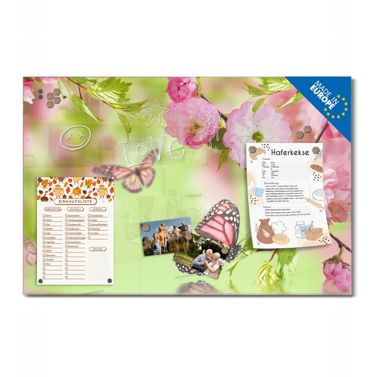 Ein Stück Design, das Ihren Alltag organisiert. Schreiben, heften, inspirieren - alles an einem Ort. Qualität, die man spürt. Montage leicht gemacht. Handwerk mit Herz - veredelt in Sachsen. Einzigartiges Design mit Motiv Motiv Japanische Kirschblüte Beschreibbare Glasoberfläche, leicht zu reinigen Starke Magnetkraft durch Stahlrückwand Inklusive 4 Neodym-Magneten Flexible Montageoptionen Handveredelt in Sachsen - Qualität, die bleibt