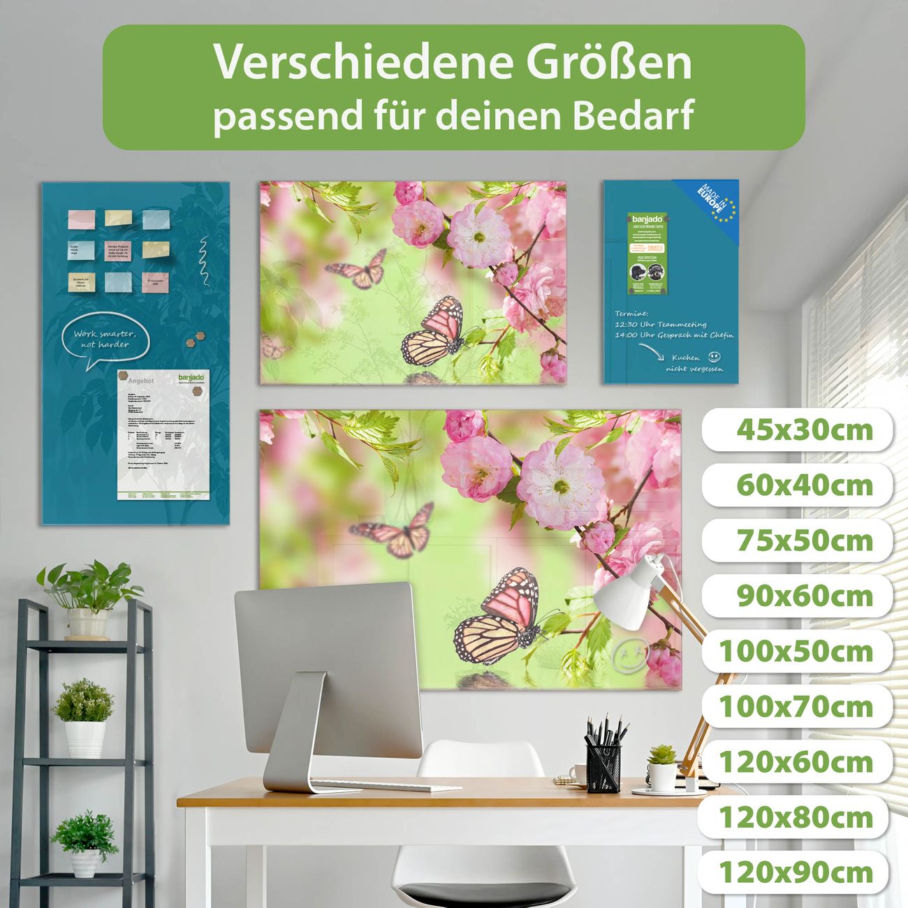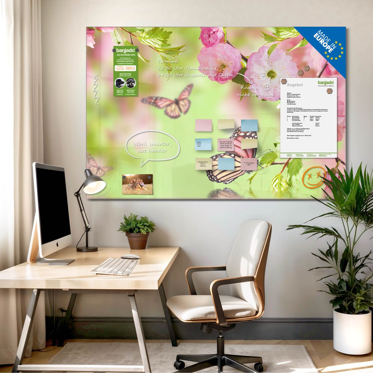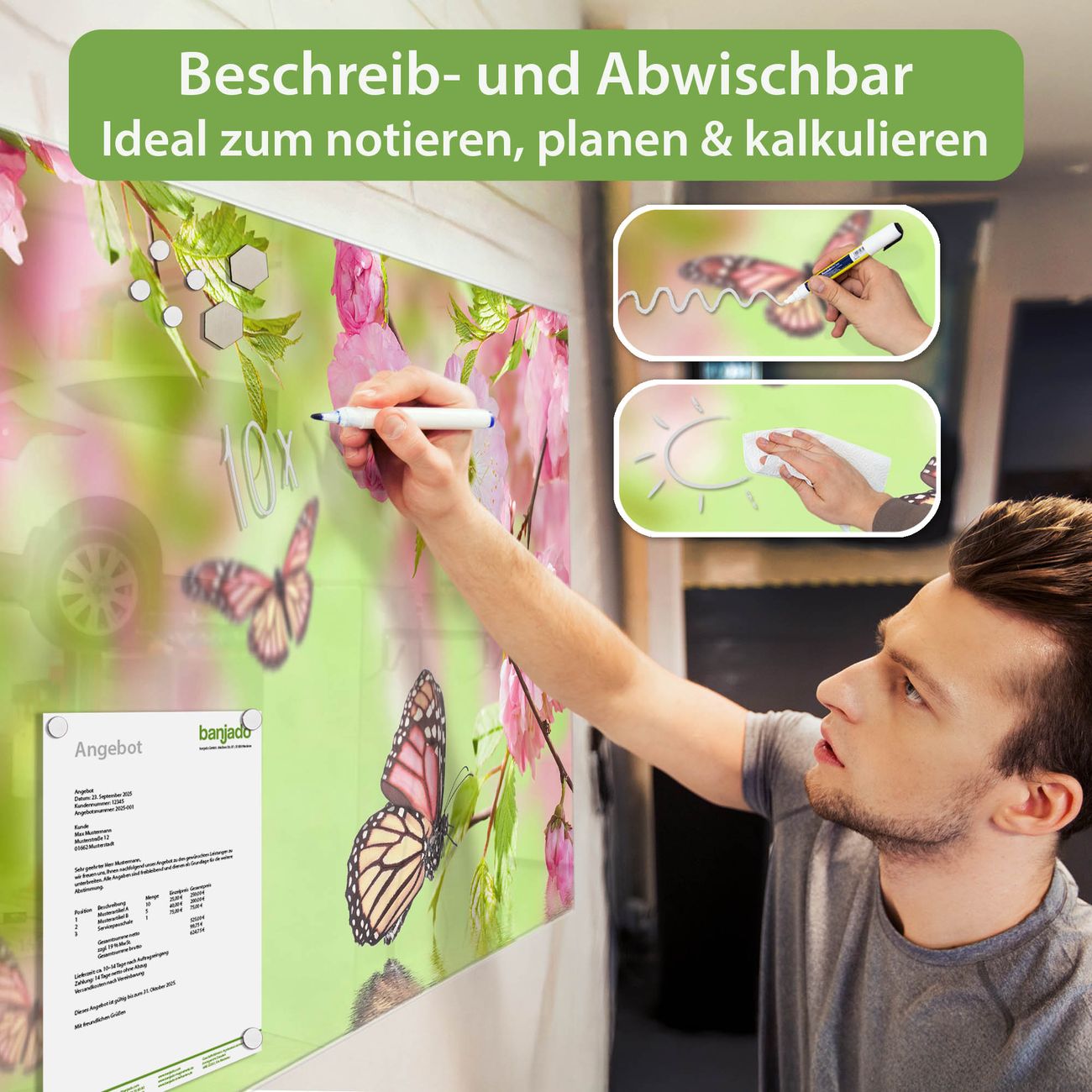 Jede Glas Magnettafel wird in unserer Werkstatt von Hand gefertigt und sorgfältig geprüft. So erhalten Sie ein echtes Qualitätsprodukt, das Funktion und Ästhetik perfekt vereint.?? Warum banjado?