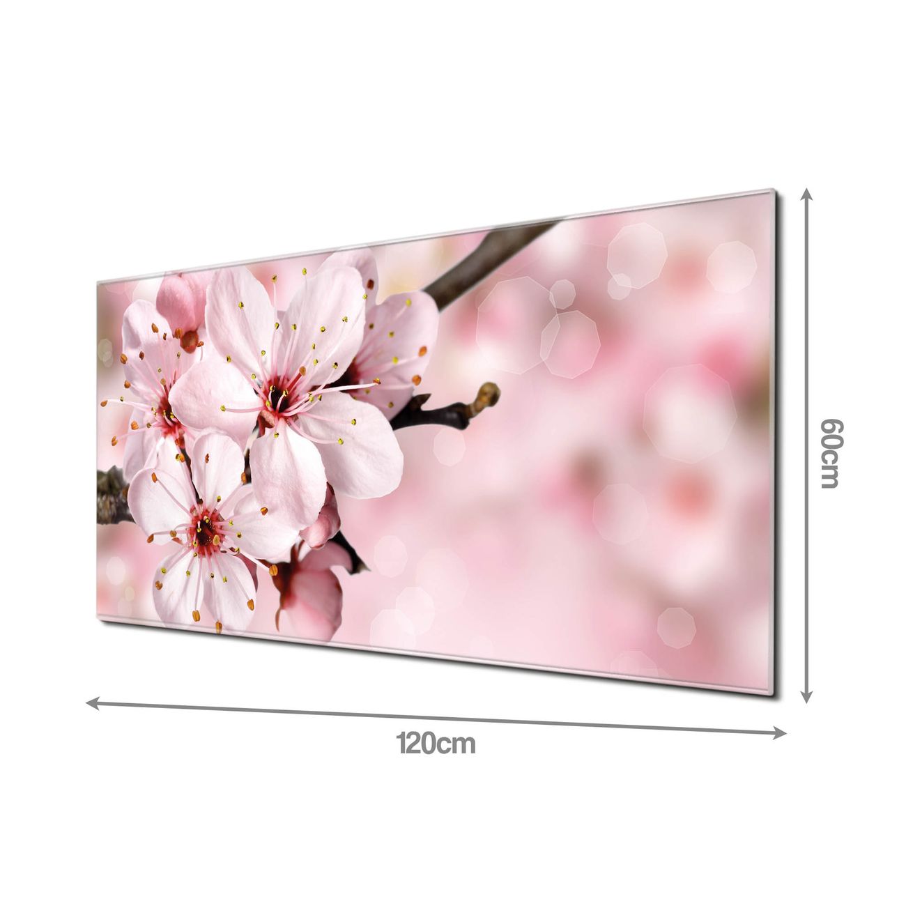 Material: 4mm Sicherheitsglas mit Metallrückwand Eigenschaften: beschreibbar, magnetisch, kratzfest Maße: 120x60x0,6cm, 10,80kg schwer Motiv Nummer 12309 Japanische Kirsche Zubehör: inklusive 4 Neodym-Magnete