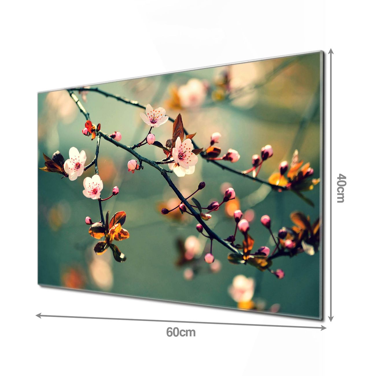 Material: 4mm Sicherheitsglas mit Metallrückwand Eigenschaften: beschreibbar, magnetisch, kratzfest Maße: 60x40x0,6cm, 3,6kg schwer Motiv Nummer 12761 Japankirsche Zubehör: inklusive 4 Neodym-Magnete