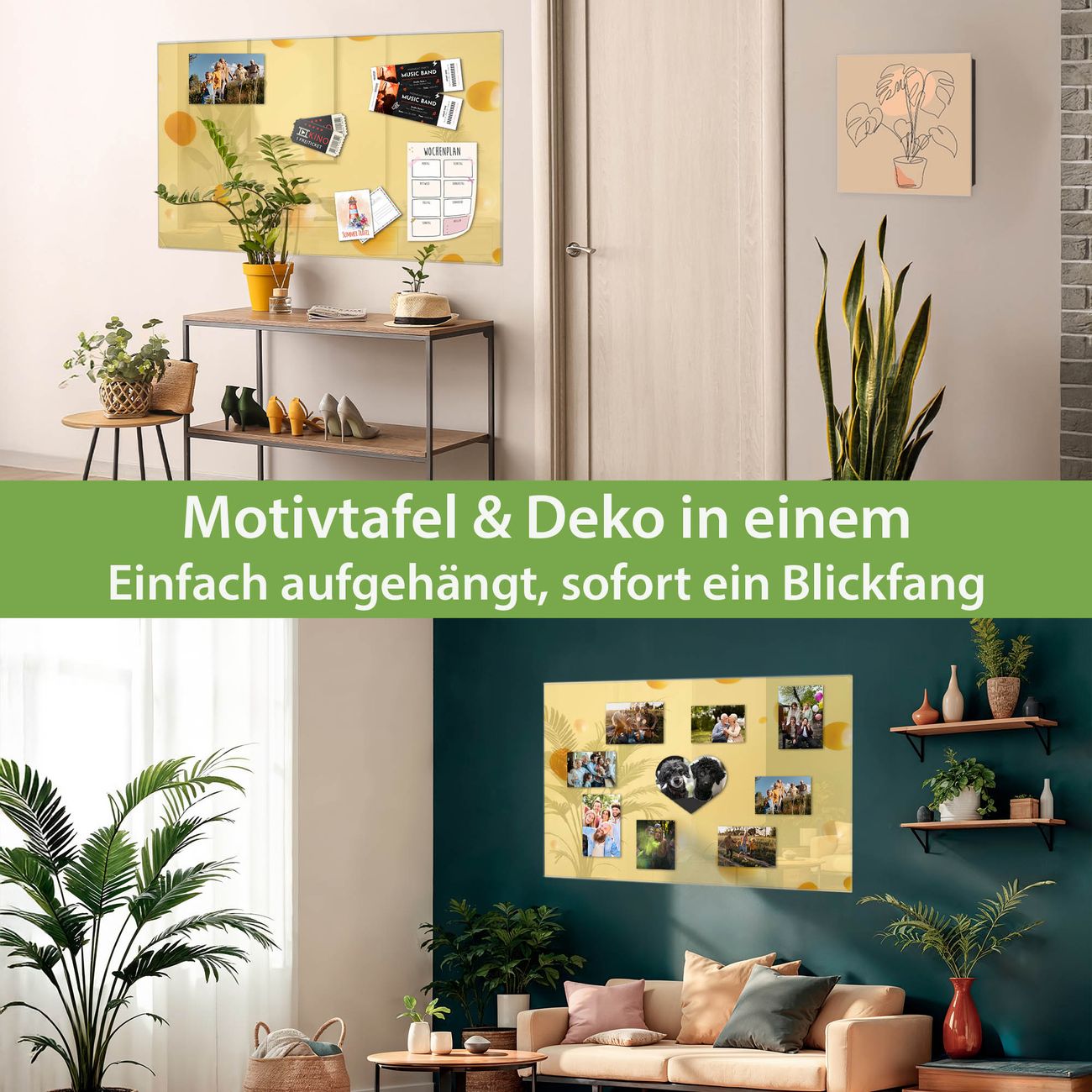 Auf der glatten Glasoberfläche lassen sich Termine, Rezepte oder Notizen ganz einfach mit Kreidestiften festhalten und rückstandslos entfernen. Starke Neodym-Magnete halten Ihre wichtigsten Erinnerungen sicher an Ort und Stelle. So entsteht Ihre ganz persönliche Ideenwand - jeden Tag neu.