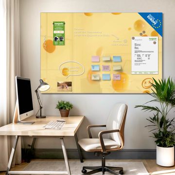Die banjado Glas Magnettafel mit dem Motiv Motiv Käse verbindet Funktionalität mit Stil. Sie ersetzt das Zettelchaos durch klare Strukturen und bringt dabei eine warme, natürliche Atmosphäre in Ihr Zuhause. Ob im Büro, in der Küche oder im Eingangsbereich - dieses Design-Board zieht Blicke an und sorgt für Ordnung mit Charakter.