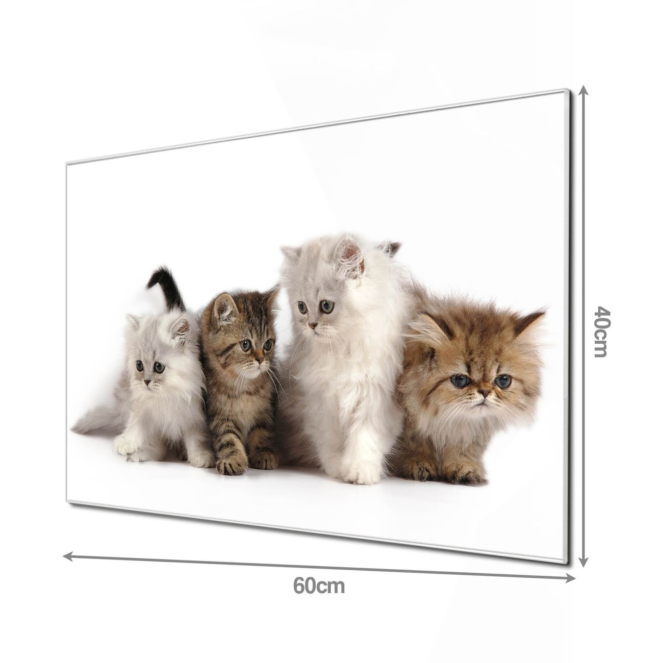 Material  4mm Sicherheitsglas mit Metallrückwand Eigenschaften  beschreibbar, magnetisch, kratzfest Maße  60x40x0,6cm, 3,6kg schwer Motiv  Nummer 10015 Kaetzchen Zubehör  inklusive 4 Neodym-Magnete