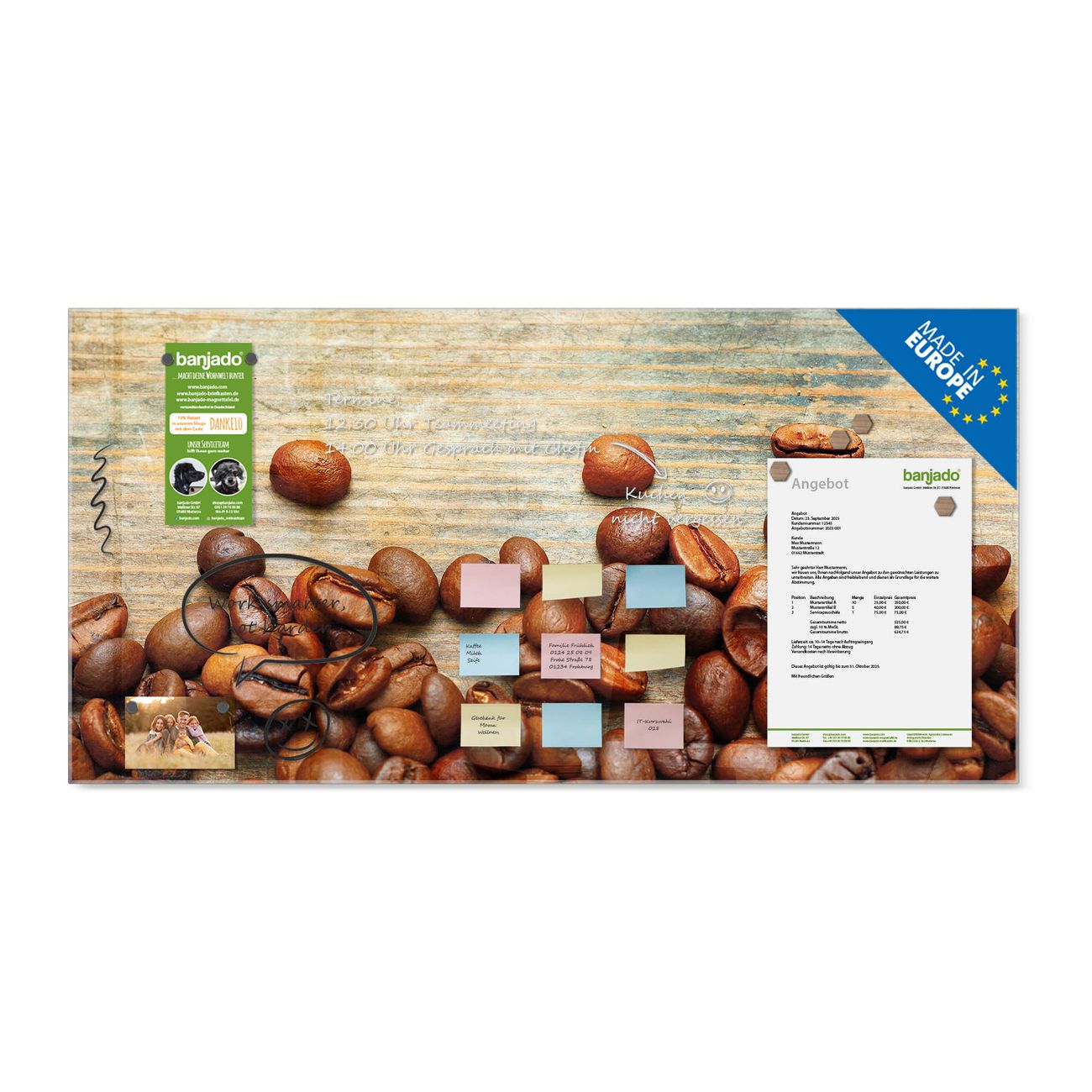 Glas Magnettafel im Querformat Motiv Kaffeebohnen