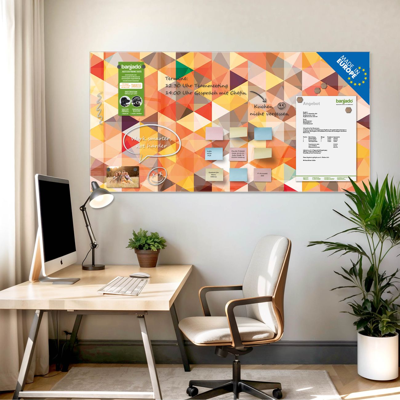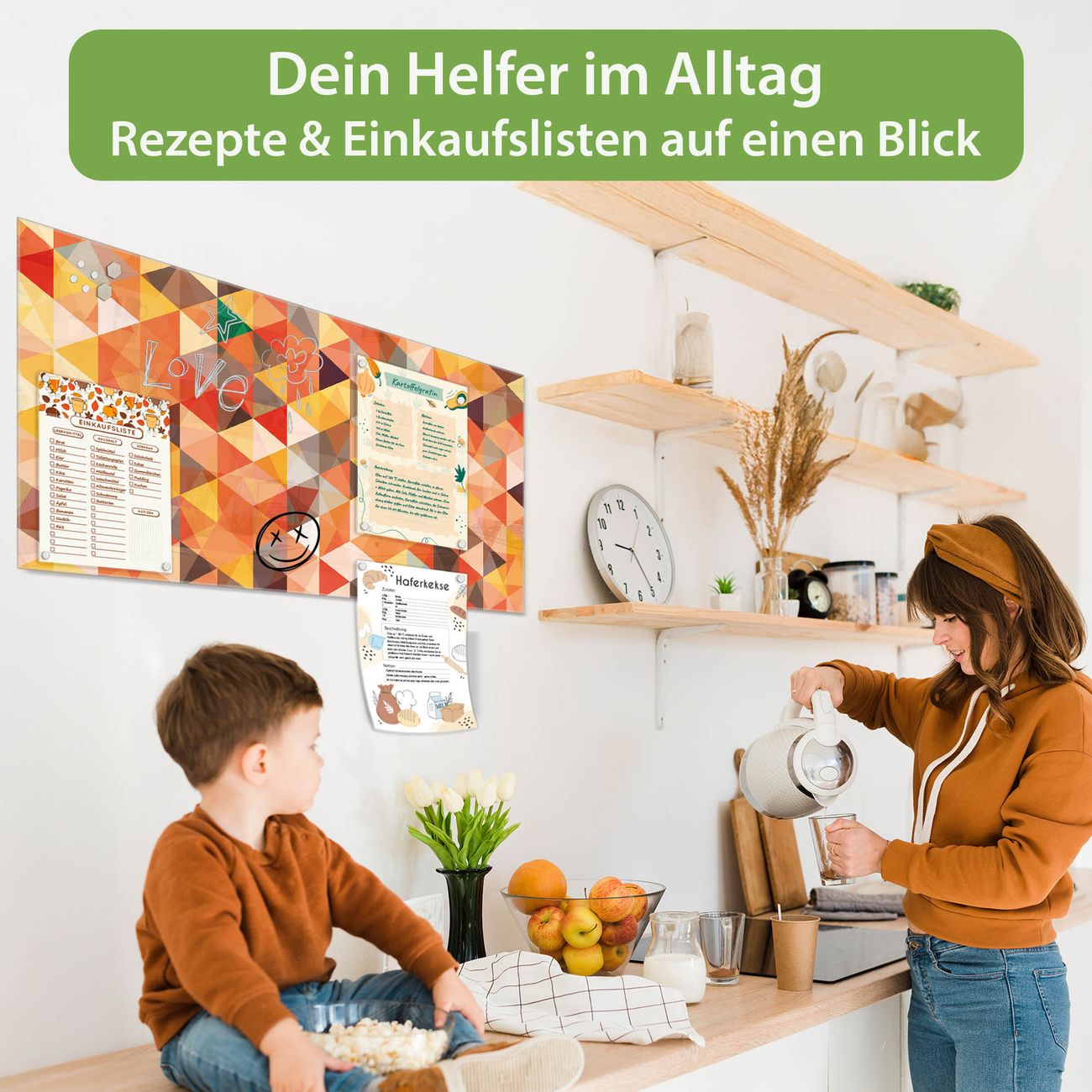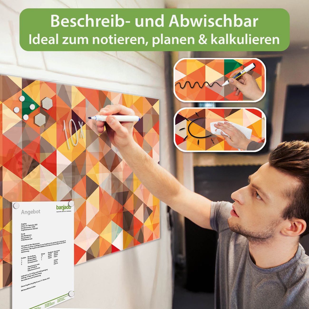 Die banjado Glas Magnettafel mit dem Motiv Motiv Kaleidoskop verbindet Funktionalität mit Stil. Sie ersetzt das Zettelchaos durch klare Strukturen und bringt dabei eine warme, natürliche Atmosphäre in Ihr Zuhause. Ob im Büro, in der Küche oder im Eingangsbereich - dieses Design-Board zieht Blicke an und sorgt für Ordnung mit Charakter.