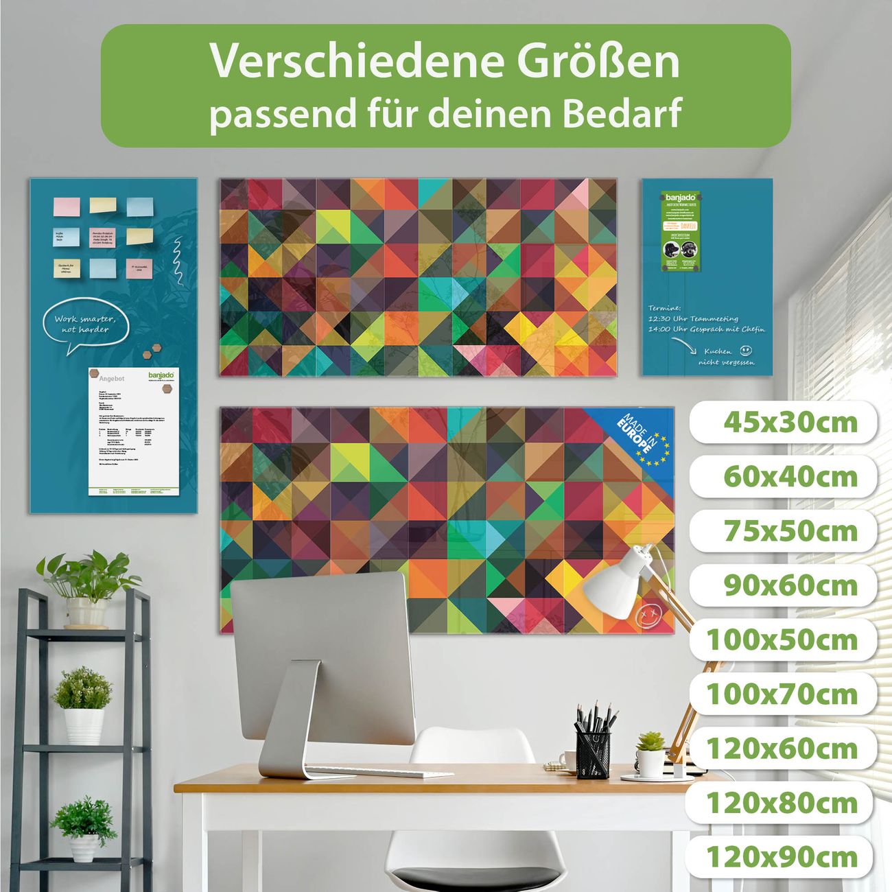 Jede Glas Magnettafel wird in unserer Werkstatt von Hand gefertigt und sorgfältig geprüft. So erhalten Sie ein echtes Qualitätsprodukt, das Funktion und Ästhetik perfekt vereint.?? Warum banjado?