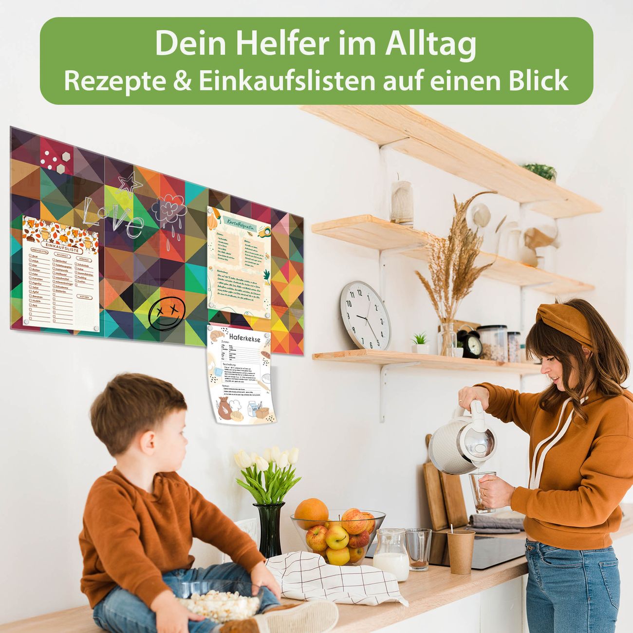 Auf der glatten Glasoberfläche lassen sich Termine, Rezepte oder Notizen ganz einfach mit Kreidestiften festhalten und rückstandslos entfernen. Starke Neodym-Magnete halten Ihre wichtigsten Erinnerungen sicher an Ort und Stelle. So entsteht Ihre ganz persönliche Ideenwand - jeden Tag neu.